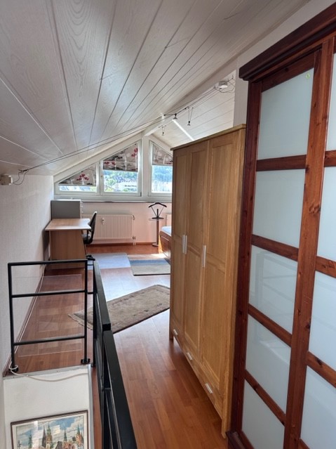 Die Wohnung verfügt über 3. Ebenen, die durch 2 steilere Treppen miteinander verbunden sind. Des Weiteren ist sie mit einem Parkettboden ausgestattet (Ebene 1 und 2), im Schlafbereich (Ebene3) wurde ein hochwertiger Laminatboden verlegt. Badezimmer und Küche sind hell gefliest.