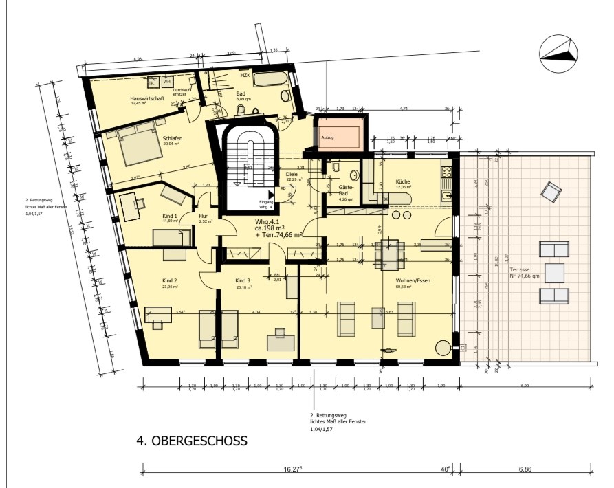 Betreten Sie das Penthouse über die vierte Etage und lassen Sie sich von der lichtdurchfluteten Atmosphäre verzaubern. Mit fünf großzügigen Zimmern haben Sie ausreichend Platz für individuelle Gestaltungsmöglichkeiten – ob als Familienheim, Homeoffice oder kreative Rückzugsorte. Die beiden Tageslichtbäder -einmal mit Badewanne und einmal mit Dusche- sind wahre Oasen der Entspannung, ausgestattet mit modernen Armaturen und viel Platz für Ihre persönlichen Wellness-Momente.